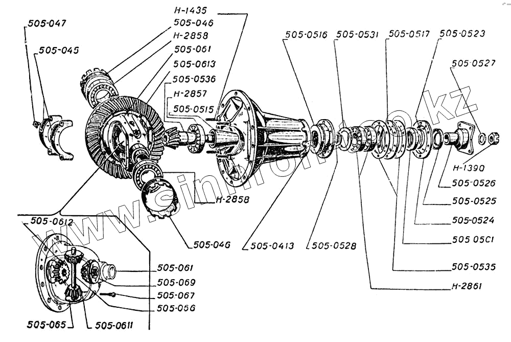 | 505-06С3 | 505-06С3 | Главная передача заднего моста в сборе с дифференциалом | |