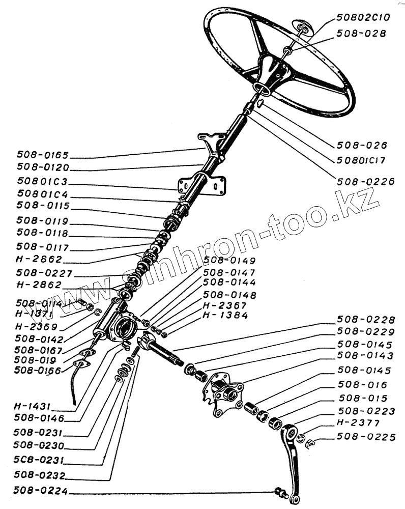 | 508-02С6 | 508-02С6 | Вал рулевого колеса с червяком в сборе | |