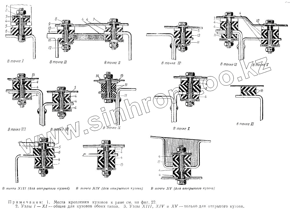 Каталог запасных частей к технике: ЗИЛ ЗИС-110. Крепление кузова к раме