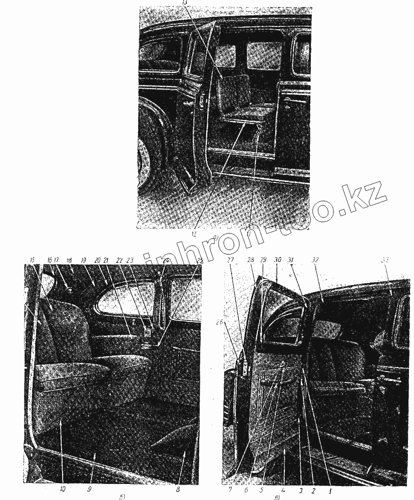 Каталог запасных частей к технике: ЗИЛ ЗИС-110. Сиденья задние. Двери задние