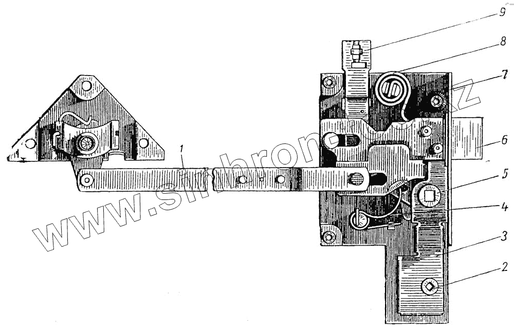 | 6 | 140-7107131 | Засов замка задней двери левый в сборе | |