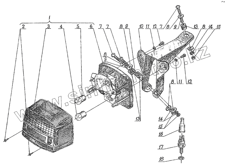 Каталог запасных частей к технике: Бренд «МИНСК» Минск М 125. Задний фонарь. Выключатель стоп-сигнала