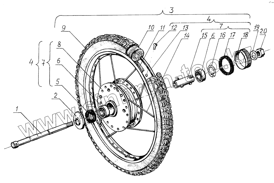 Каталог запасных частей к технике: Бренд «МИНСК» Минск С 125. Колесо переднее