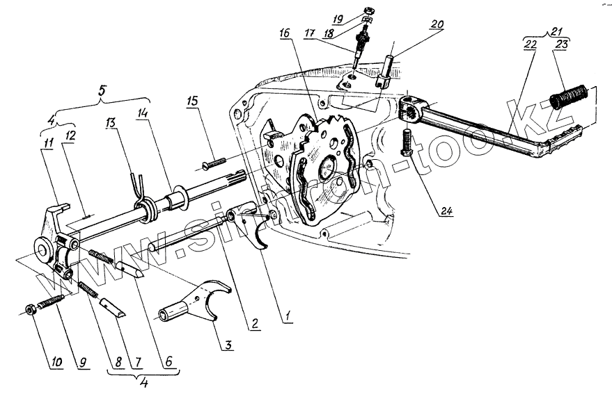 Каталог запасных частей к технике: Бренд «МИНСК» Минск С 125. Механизм переключения передач