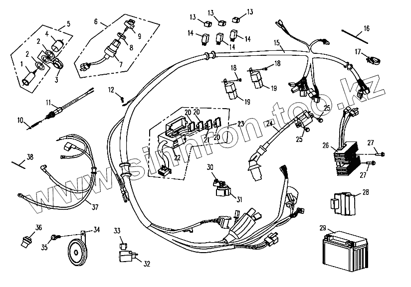 Каталог запасных частей к технике: CF Moto ATV-CF500-A. Электрическое оборудование