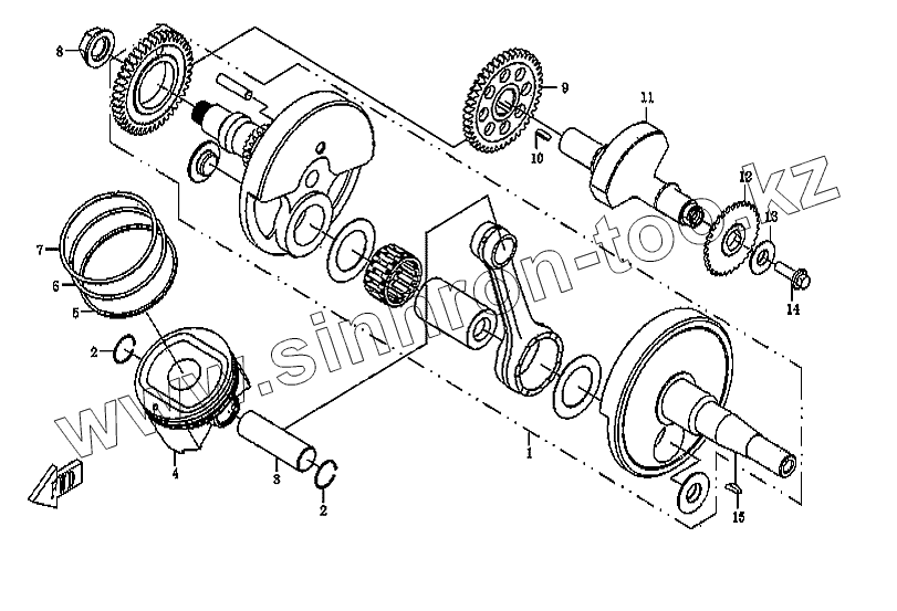 Каталог запасных частей к технике: CF Moto ATV-CF500-A. Коленвал, поршень, балансирный вал