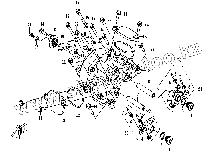 | 32 | CF188-021200 | Коромысло выпускного клапана в сборе |