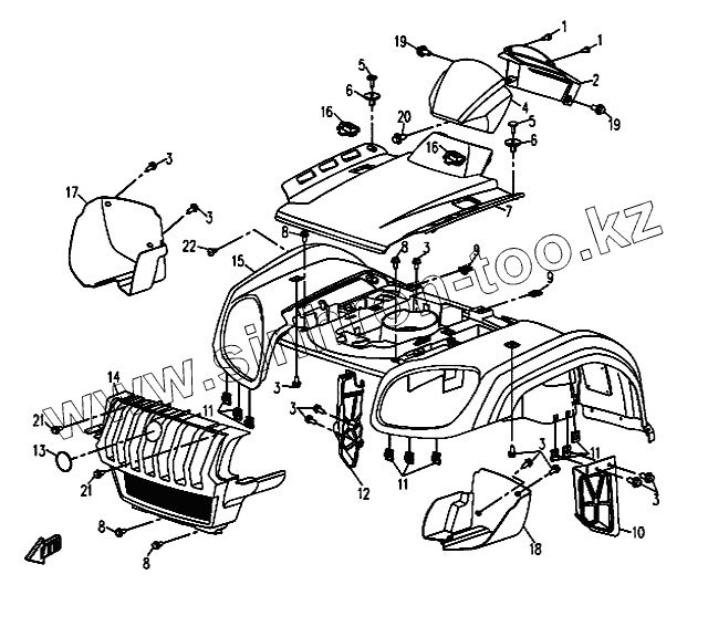 Каталог запасных частей к технике: CF Moto ATV-CF500-A. Пластиковая облицовка