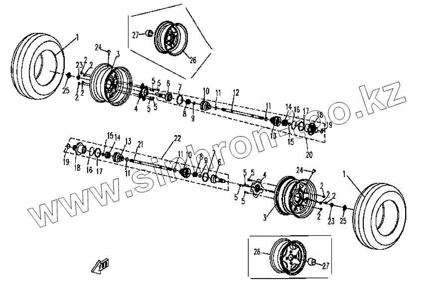 Каталог запасных частей к технике: CF Moto ATV-CF500-A. Задние колеса в сборе