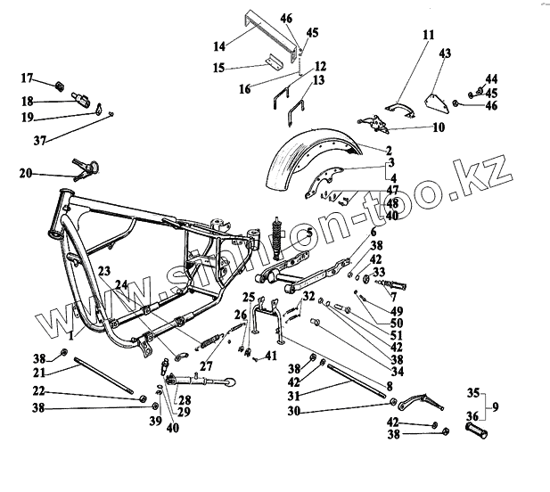 Каталог запасных частей к технике: ИМЗ-8.1238 "Волк". Рама мотоцикла