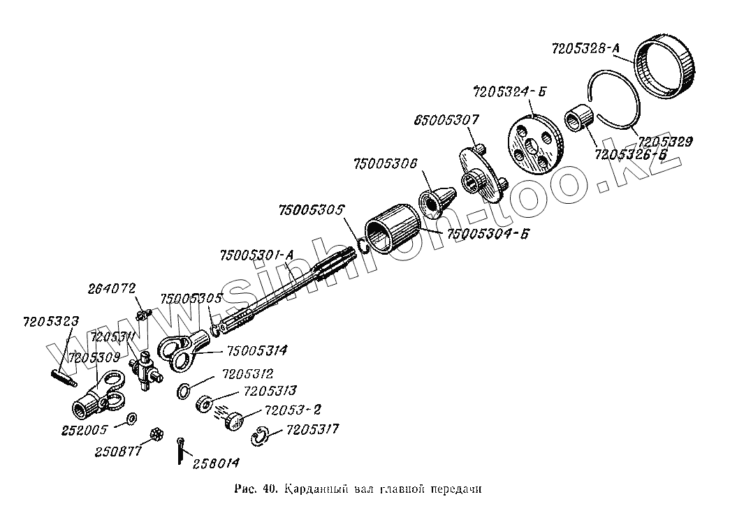Каталог запасных частей к технике: ИМЗ МВ-750. Карданный вал главной передачи