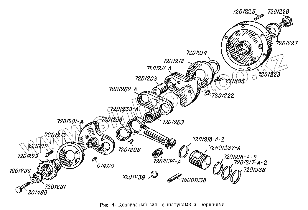 Каталог запасных частей к технике: ИМЗ МВ-750. Коленчатый вал с шатунами и поршнями