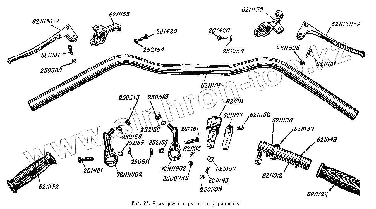 Каталог запасных частей к технике: ИМЗ МВ-750. Руль, рычаги, рукоятки управления