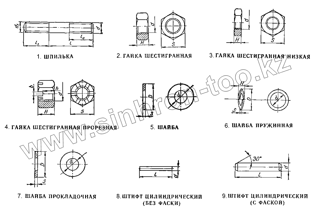 Каталог запасных частей к технике: ИМЗ МВ-750. Шпильки, гайки, шайбы, штифты