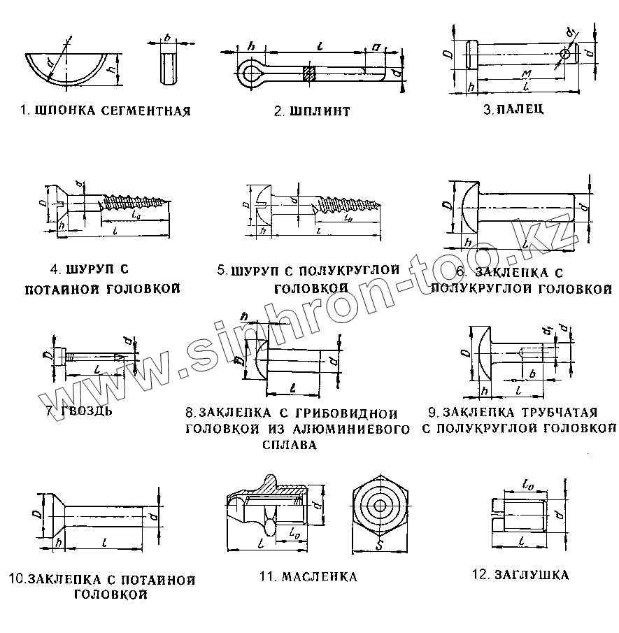 Каталог запасных частей к технике: ИМЗ МВ-750. Шпонки, шплинты, пальцы, шурупы, заклепки, гвоздь