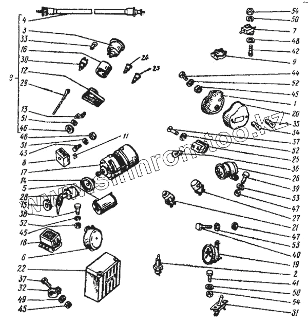 Каталог запасных частей к технике: ИМЗ Урал М-67-36. Электрооборудование мотоцикла