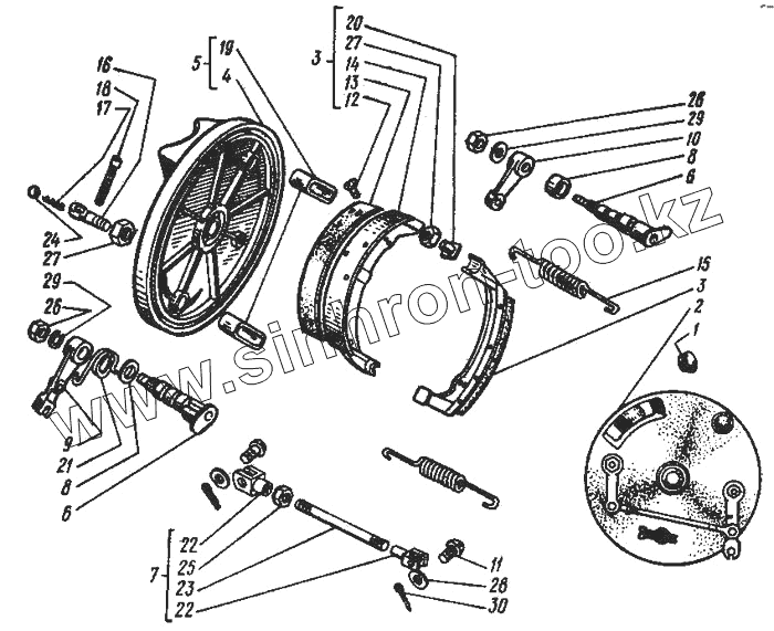 Каталог запасных частей к технике: ИМЗ Урал М-67-36. Передний тормоз