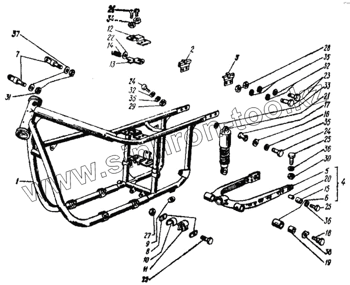 Каталог запасных частей к технике: ИМЗ Урал М-67-36. Рама, маятник