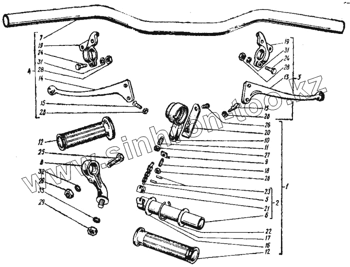 Каталог запасных частей к технике: ИМЗ Урал М-67-36. Труба руля, рычаги, рукоятки управления