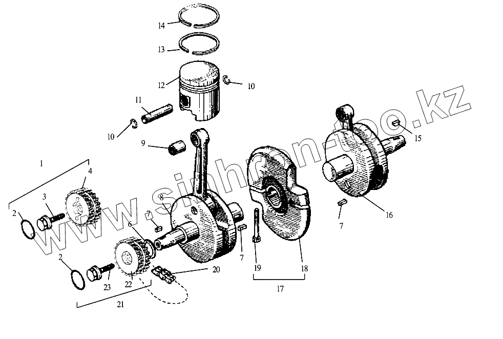 Каталог запасных частей к технике: ИЖМОТО ИЖ-6.113-03 "Юпитер". Поршень и вал коленчатый