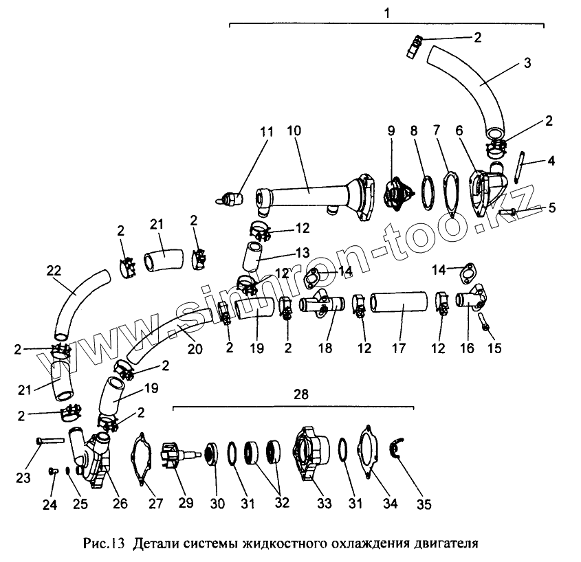 Каталог запасных частей к технике: ИЖМОТО ИЖ-6.113-05 "Юнкер". Детали системы жидкостного охлаждения двигателя