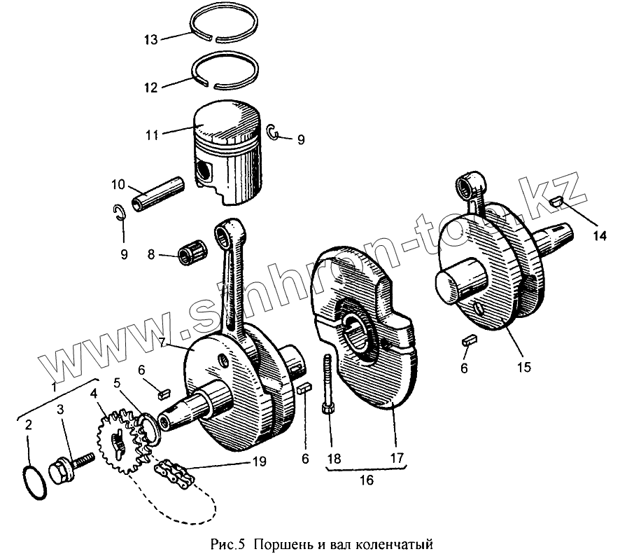 Каталог запасных частей к технике: ИЖМОТО ИЖ-6.113-05 "Юнкер". Поршень и вал коленчатый