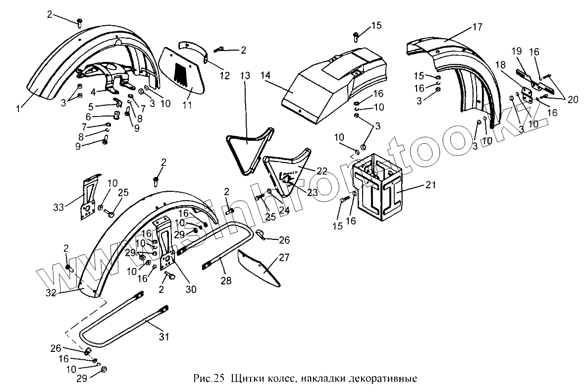 Каталог запасных частей к технике: ИЖМОТО ИЖ-6.113-05 "Юнкер". Щитки колес, накладки декоративные