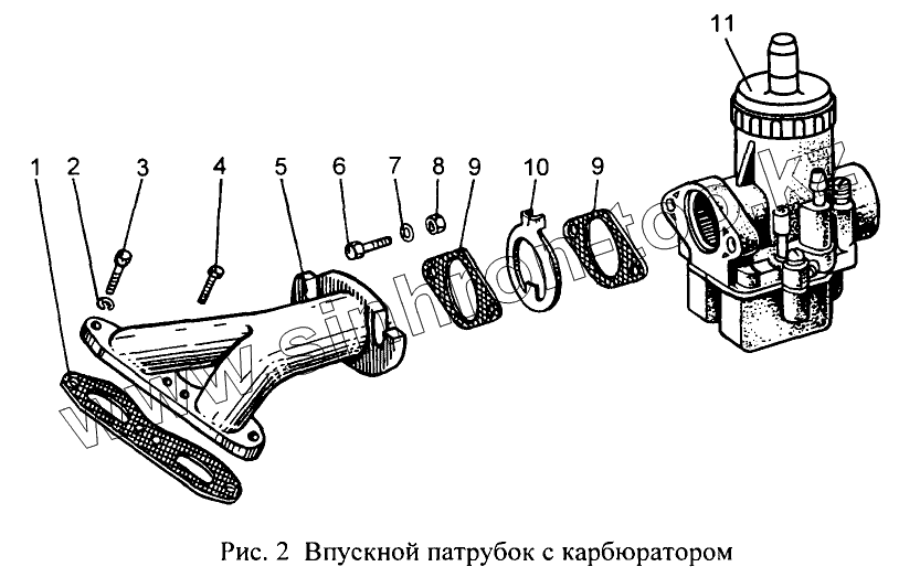 Каталог запасных частей к технике: ИЖМОТО ИЖ-6.113-05 "Юнкер". Впускной патрубок с карбюратором