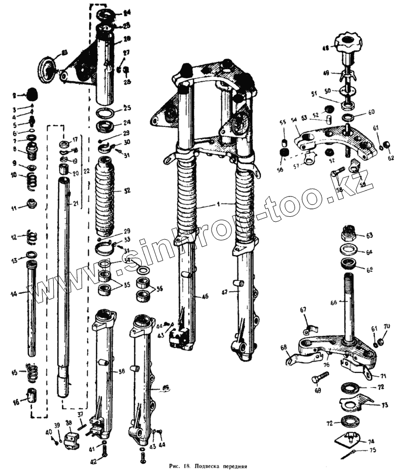 Каталог запасных частей к технике: ИЖМОТО ИЖ-7.107 "Планета-5". Подвеска передняя