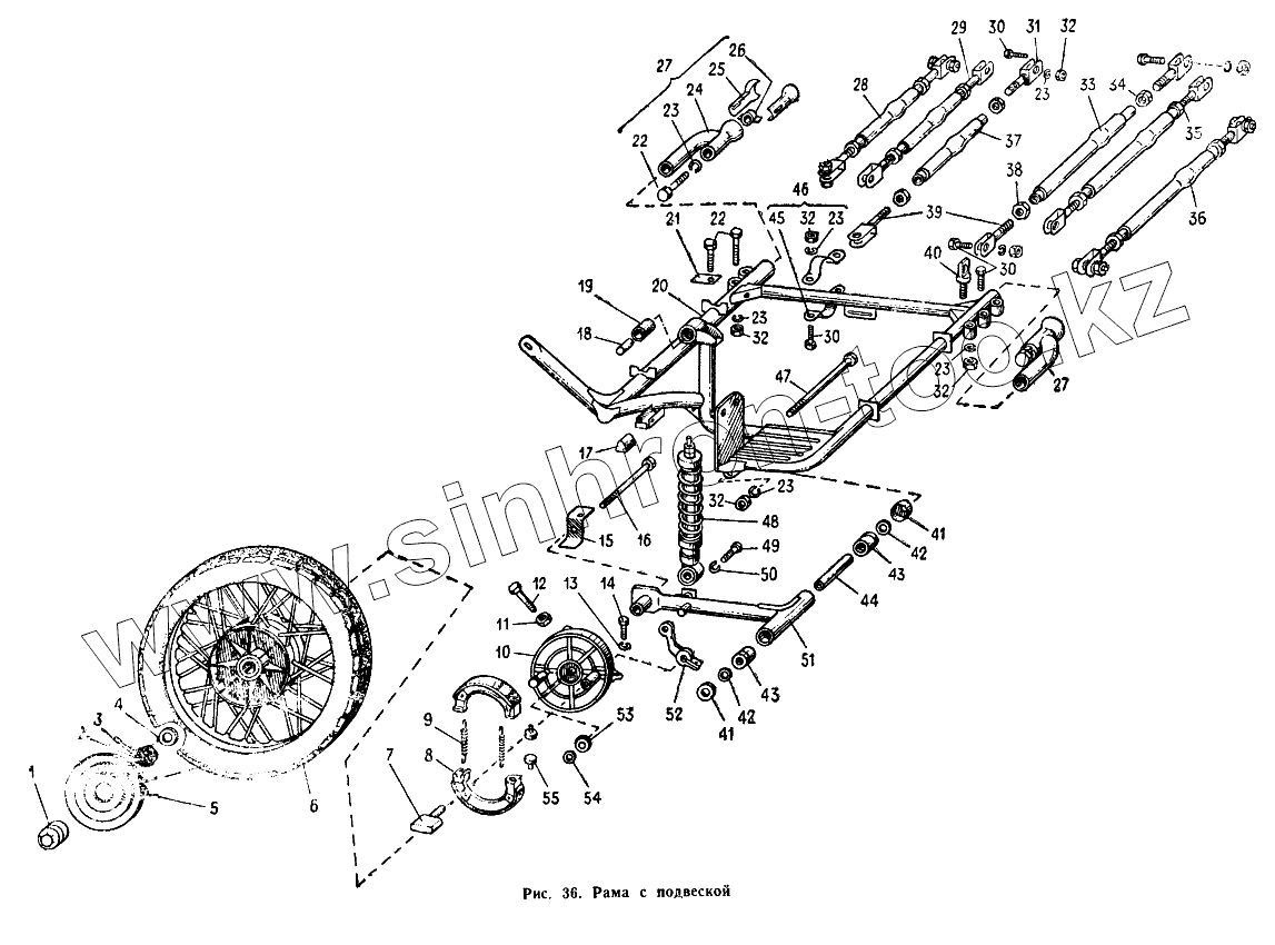 Каталог запасных частей к технике: ИЖМОТО ИЖ-7.107 "Планета-5". Рама с подвеской