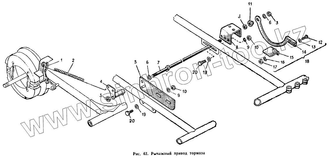 Каталог запасных частей к технике: ИЖМОТО ИЖ-7.107 "Планета-5". Рычажный привод тормоза