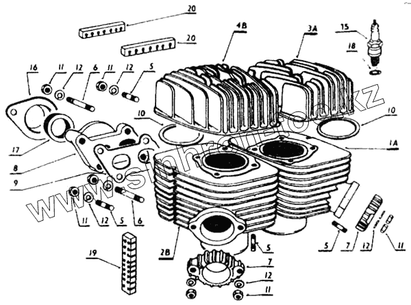 Каталог запасных частей к технике: Java-350. Цилиндр с головкой