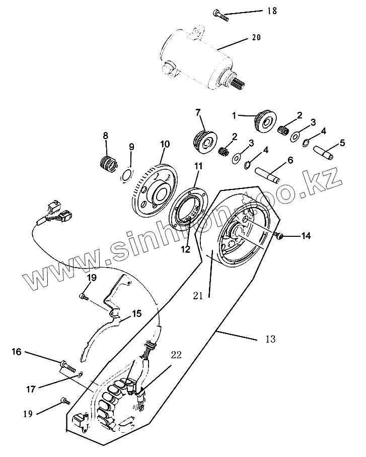 Каталог запасных частей к технике: Jianshe JS400 ATV-2. Механизм электростартера