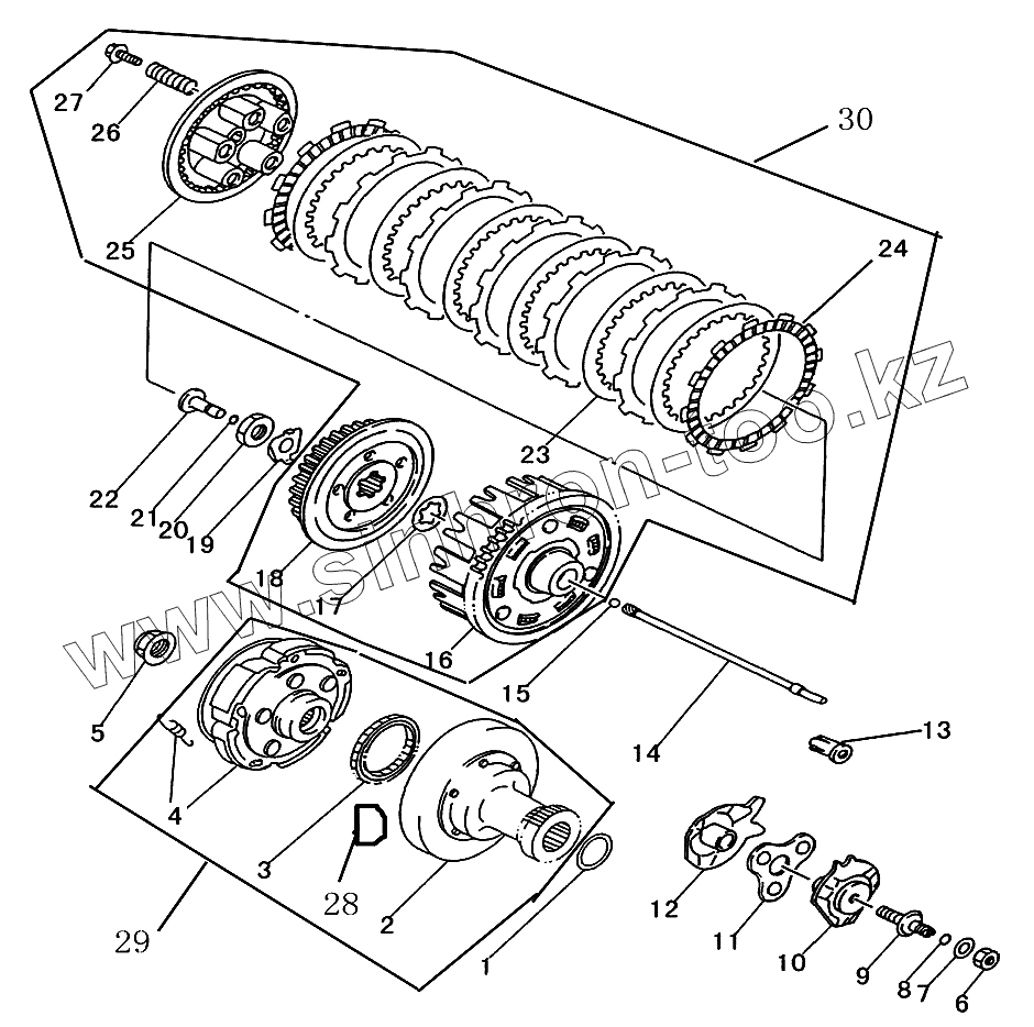 Каталог запасных частей к технике: Jianshe JS400 ATV-2. Сцепление