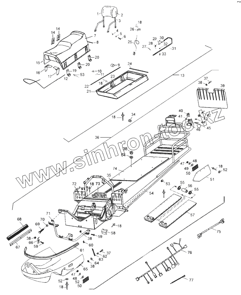 Каталог запасных частей к технике: Русская механика Снегоход "Тайга-Атака". Корпус, сиденье