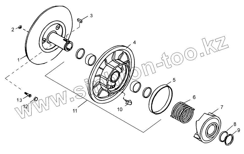 Каталог запасных частей к технике: Русская механика Снегоход "Тайга-Атака". Шкив вариатора ведомый