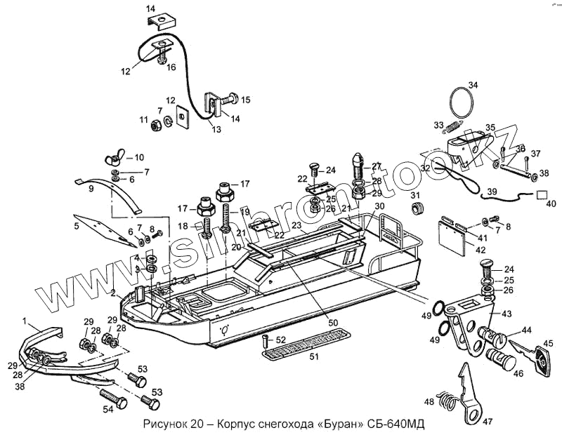 Каталог запасных частей к технике: Сатурн СБ-640А "Буран". Корпус снегохода "Буран" СБ-640МД