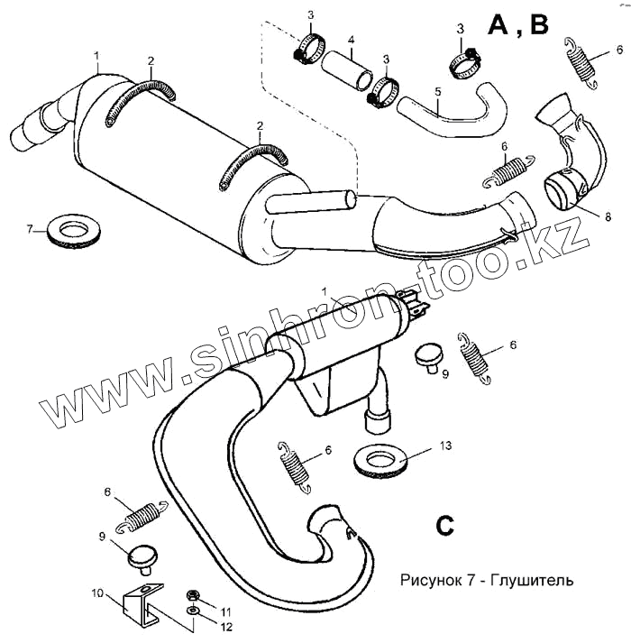 Каталог запасных частей к технике: Сатурн СТ-500Д "Тайга". Глушитель