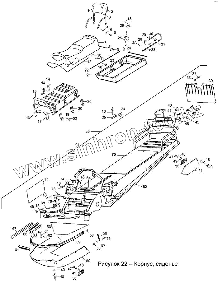 Каталог запасных частей к технике: Сатурн СТ-500Д "Тайга". Корпус, сиденье