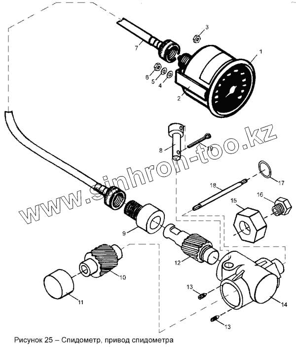 Каталог запасных частей к технике: Сатурн СТ-500Д "Тайга". Спидометр, привод спидометра