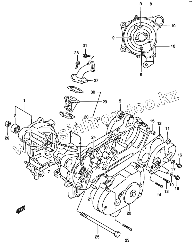 Каталог запасных частей к технике: Suzuki AZ50. Картер двигателя