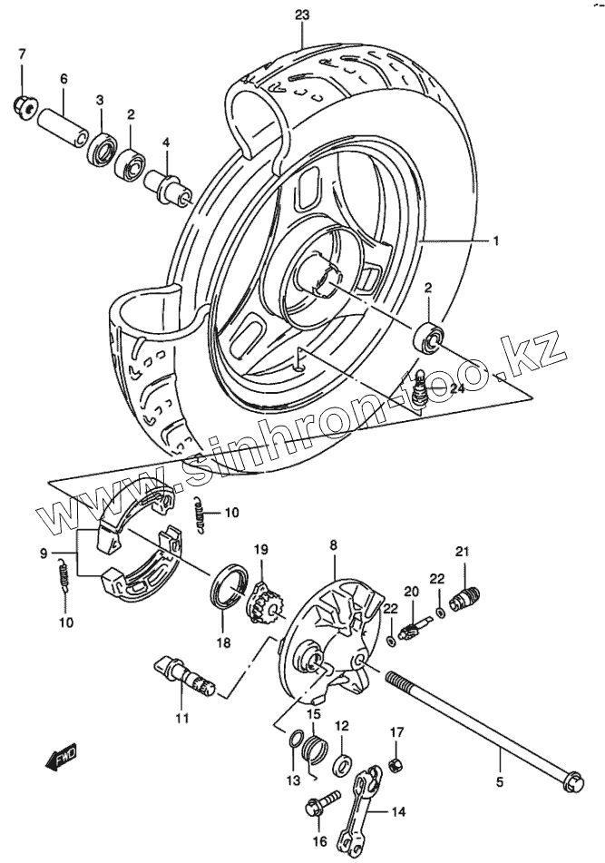 Каталог запасных частей к технике: Suzuki AZ50. Переднее колесо
