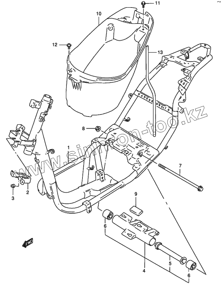 Каталог запасных частей к технике: Suzuki AZ50. Рама