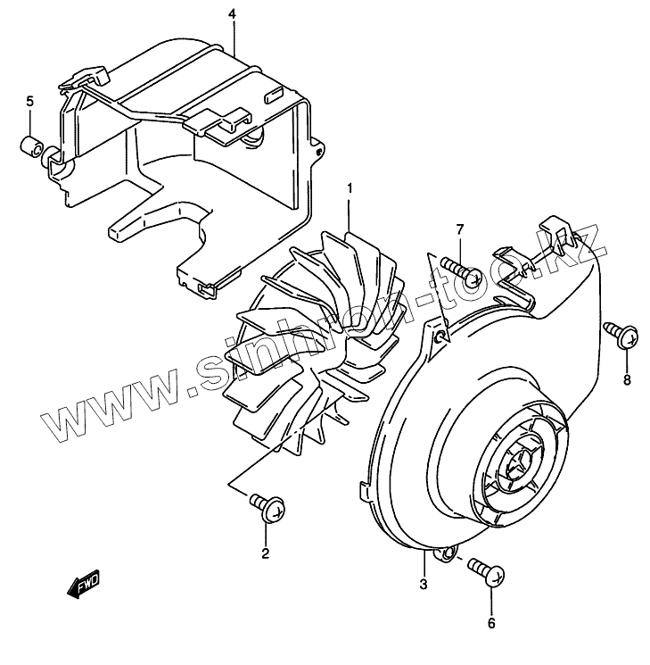 Каталог запасных частей к технике: Suzuki AZ50. Вентилятор охлаждения