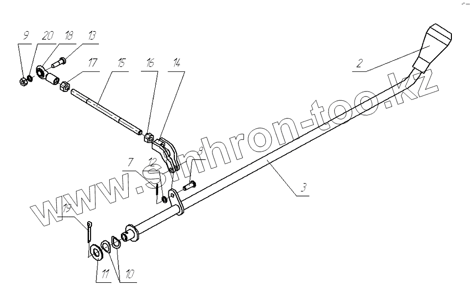 Каталог запасных частей к технике: УМПО-500 "Рысь". Рычаг управления реверсом