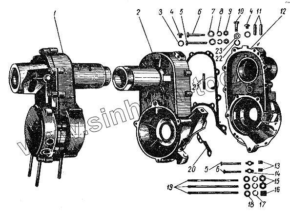 | 12 | 1-35 с д. 1-33, д. 1-13 и 1-72-1 | Картер двигателя (правая половина) | |