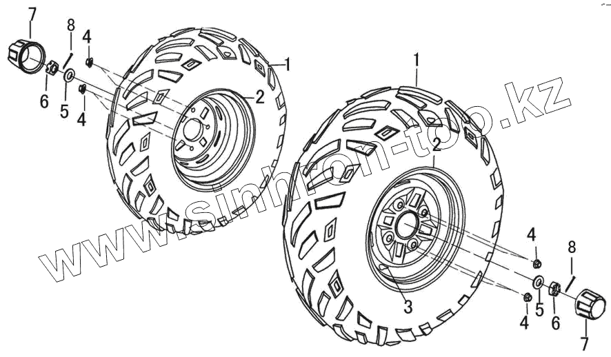 Каталог запасных частей к технике: ЗиД Квадроцикл LF-250ST–2. ПЕРЕДНЕЕ КОЛЕСО В СБОРЕ