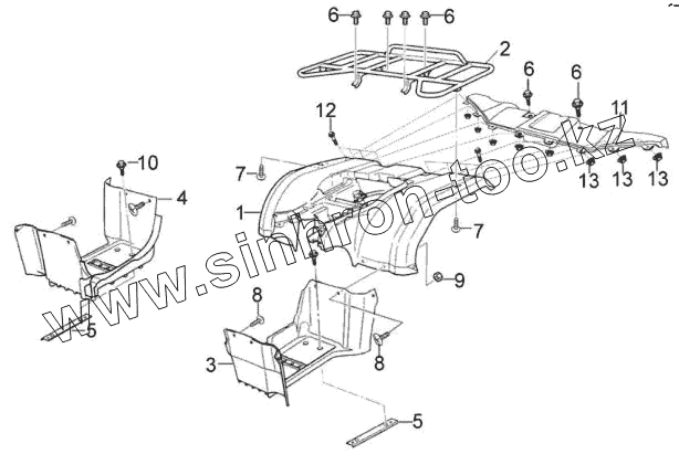 Каталог запасных частей к технике: ЗиД Квадроцикл LF-400ST. Облицовка задняя, багажник задний