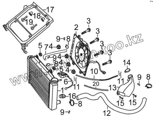 Каталог запасных частей к технике: ЗиД Квадроцикл LF-400ST. Радиатор в сборе
