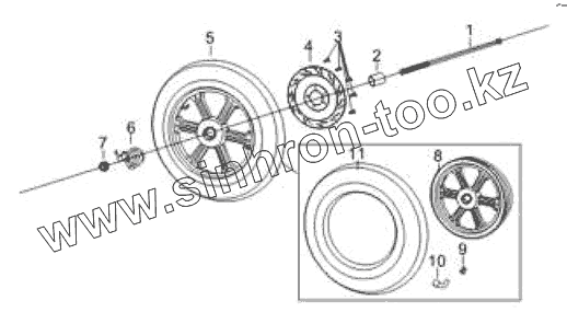 Каталог запасных частей к технике: ЗиД Мотороллер LF-125T-9L. Колесо переднее в сборе